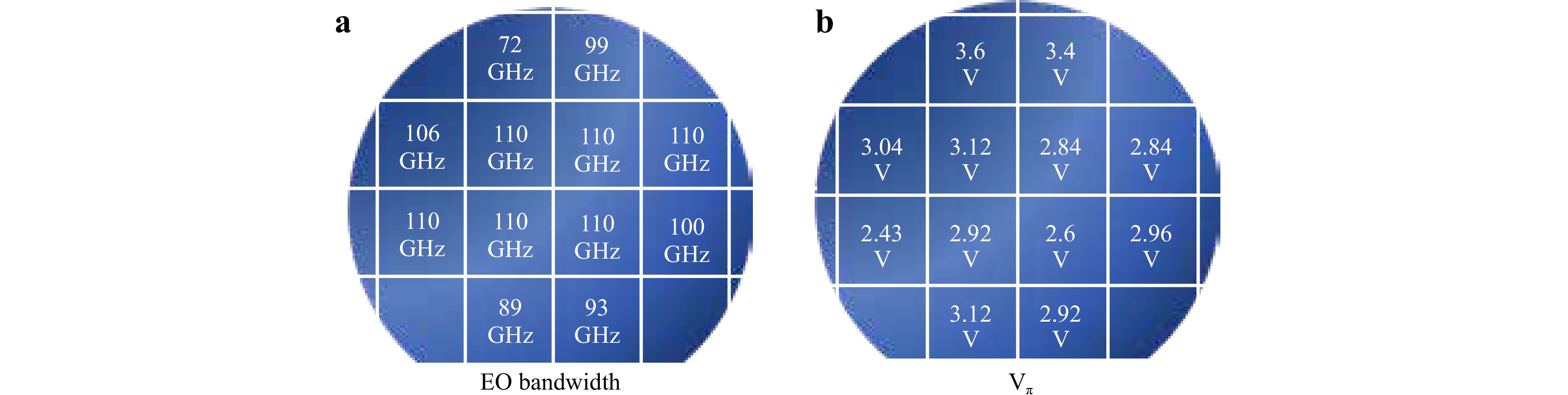 The continuous growth in data centre traffic, especially from artificial intelligence and machine learning workloads, is driving increased single carrier line rates. High-bandwidth electro-optic modulators are essential for supporting 400 Gbit/s per lane transmission. While recent advancements have demonstrated bandwidths greater than 110 GHz at the die level, this throughput is insufficient for current and future applications like data centre optical interconnects. This paper presents a photonic platform based on 4-inch thin-film lithium niobate wafers with a quartz substrate, offering high yield, low loss and high bandwidth. This platform achieves waveguide propagation loss of < 0.4 dB/cm. The thin-film lithium niobate modulators fabricated on this platform can attain a bandwidth exceeding 110 GHz and possess a half-wave voltage (Vπ) lower than 3 V, with the modulator yield reaching 50%. Additionally, by employing deep-ultraviolet lithography and a metal lift-off process, the platform can be extended to larger wafer sizes (e.g., 6 or 8 inches). This significant increase in wafer-level throughput for 110 GHz electro-optic modulators can greatly enhance data centre optical interconnect capabilities.